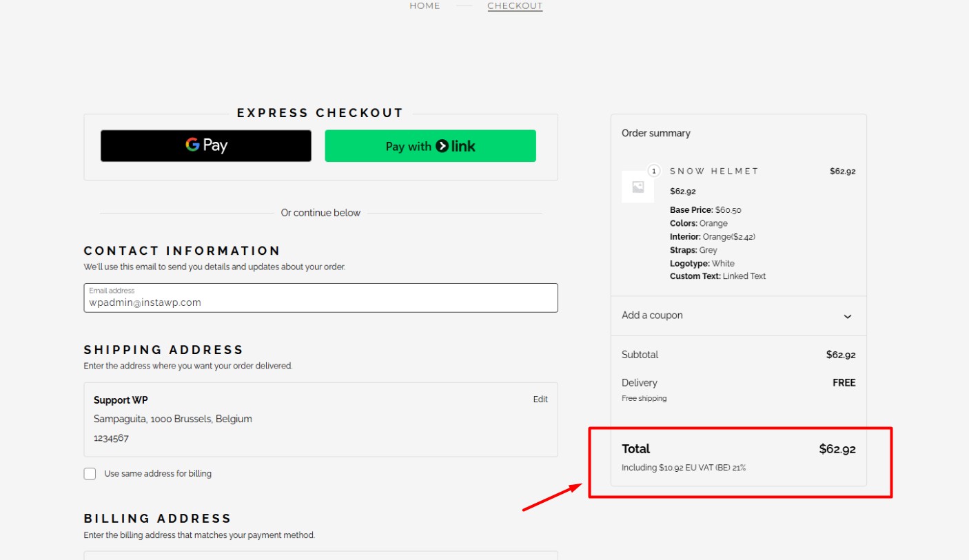 ✅ Prices including VAT are available on Cart Page and during checkout of configured products.