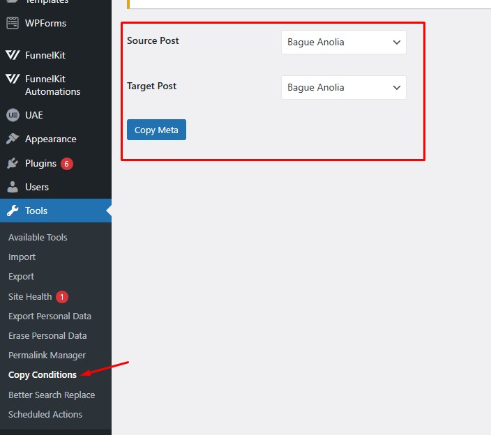 - Navigate to Tools > Copy Conditions in your WordPress admin panel.